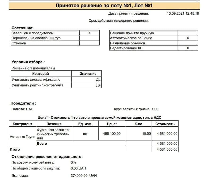 Компания-заказчик, проводила закупку в форме онлайн тендера. Им удалось сэкономить 20% от начальной стоимости нужного товара, а в финале получить еще +3,5% экономии от лучшей цены у выбранного дилера (профессионалы- закупщики APS постарались).